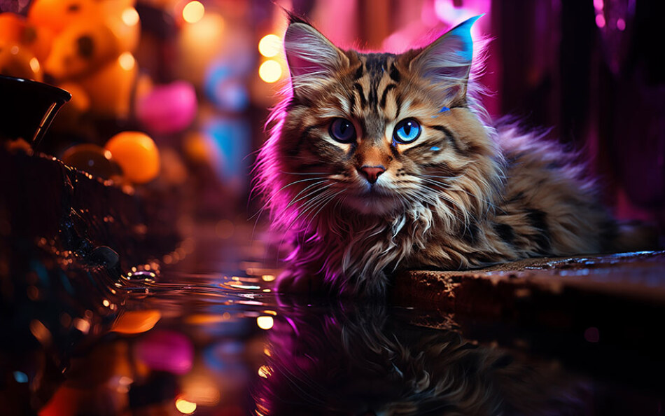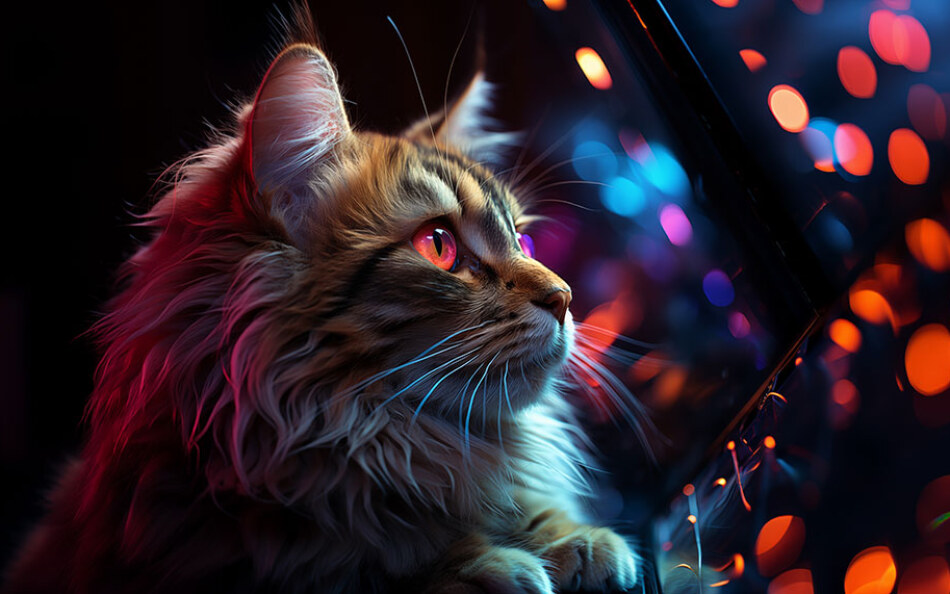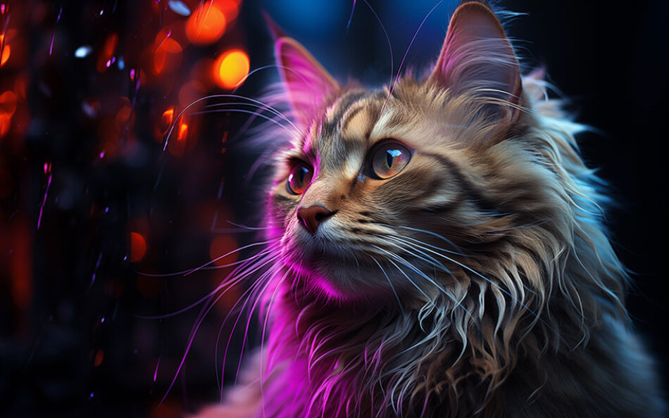 Cat in colorful light HD wallpaper 4K free download for Desktop laptop and Phones
