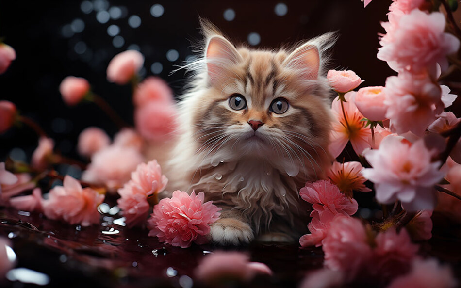 Cute cat Pink wallpaper 4K HD free download for Desktop laptop and Phones